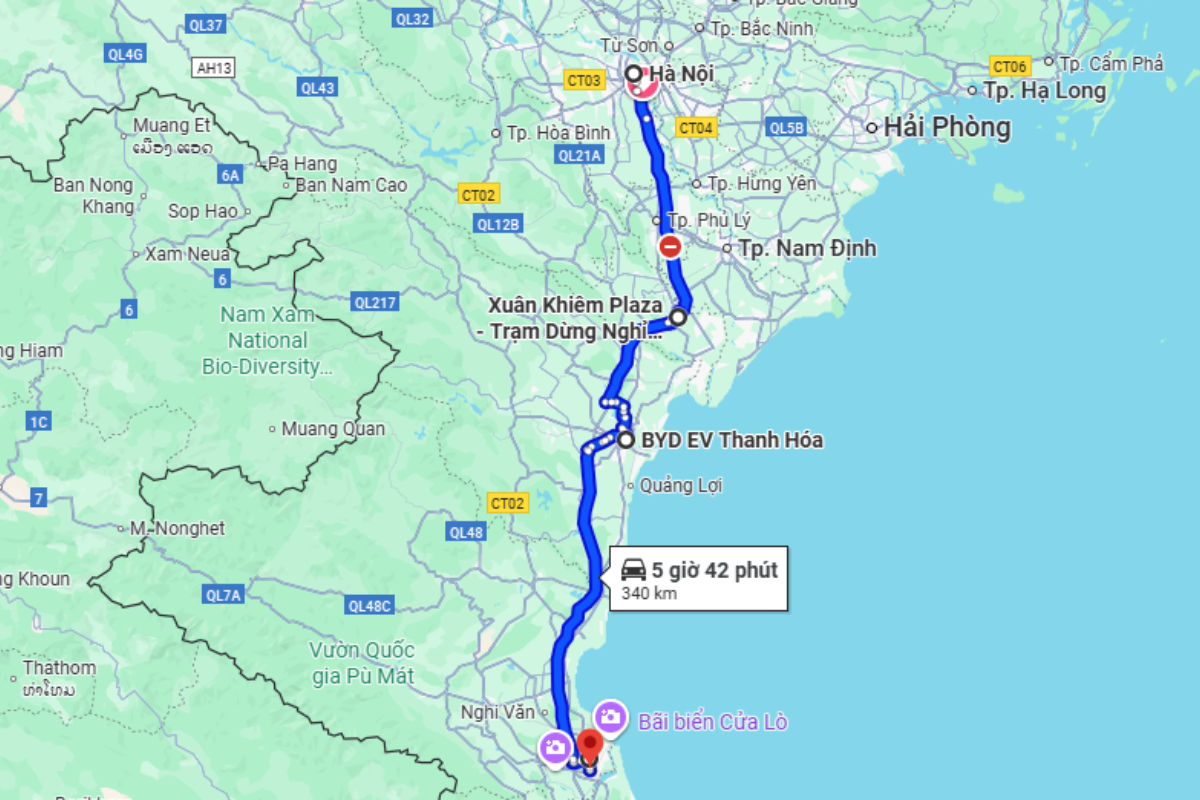 Trước khi rời Nghệ An, nên sạc đầy tại BYD EV Vinh. Trên đường về, có thể dừng tại Thanh Hóa hoặc Ninh Bình để nạp nhanh, đảm bảo pin luôn ở mức an toàn khi về tới Hà Nội.