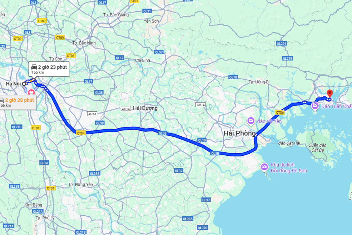 - Quãng đường: ~155 km (cao tốc Hà Nội – Hải Phòng – Thành phố Hạ Long).