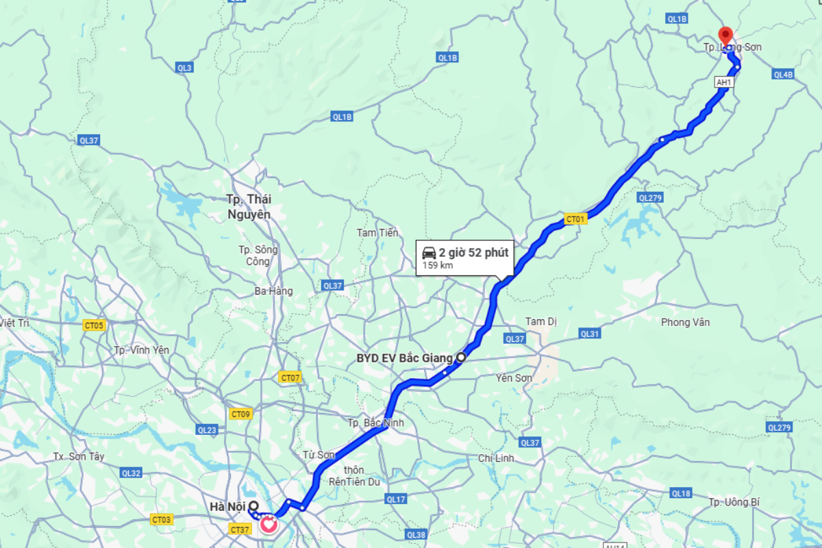 Trước khi rời Lạng Sơn, khách hàng có thể sạc bổ sung tại Hoa Sim hoặc Bến Bắc. Trên đường về, nếu cần, dừng tại BYD EV Bắc Giang để đảm bảo pin luôn ở mức an toàn khi về tới Hà Nội.