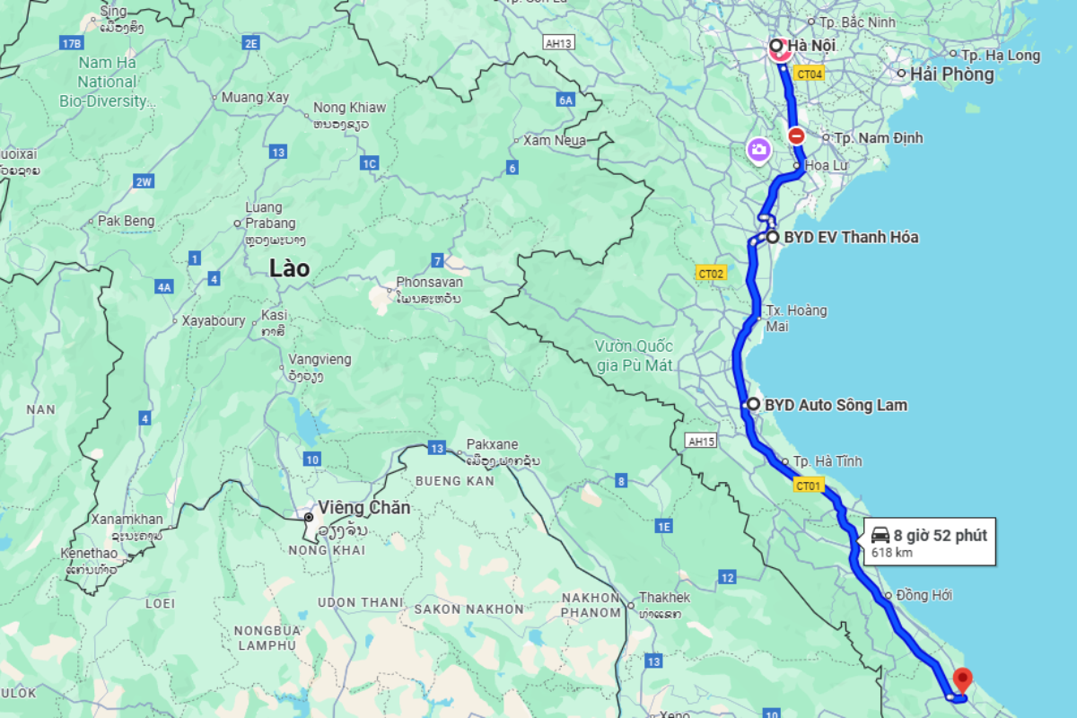 Để hành trình thuận tiện và an toàn, khách hàng nên sạc bổ sung tại Thanh Hóa hoặc Nghệ An, nơi có nhiều trạm DC tốc độ cao: